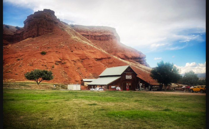 On dort devant une micro brasserie installée dans une ancienne grange et devant un gros caillou rouge. C’est très beau. On arrive pas tard, mais il ferme à 20h, alors on décale l’apéro. Manu va chercher à manger pendant que j’écris. Y’a un truc à burger pas loin. Ça fera le job. On a failli prendre des Moutain Oysters (oui, des huîtres de montagne). Ce sont en fait, des testicules de bœuf (taureaux ?). C’est bizarre d’associer des couilles à des huîtres, quand même. Il parait que c’est bon, mais à 20 dollars, ça faisait cher l’expérience. J’imagine que c’est pour mettre en avant la délicatesse du plat ? Nous sommes restés simples. Burger it shall be. Oh bah il pleut pendant qu’on mange. C’est presque une tradition maintenant.