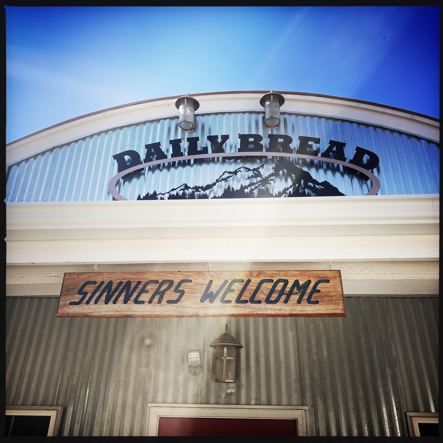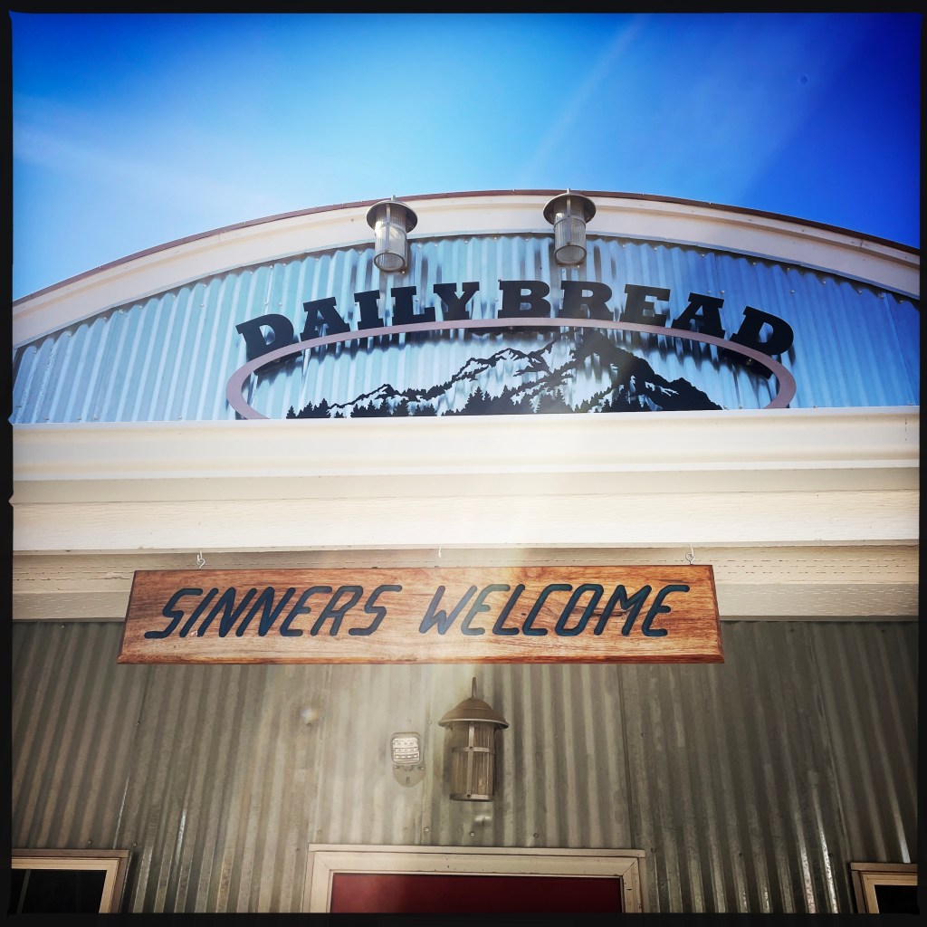 AAAh non. Manu pige vite « Le Daily Bread », le pain de ce jour. Les panneaux invitant à prier, à aimer son prochain sont partout. C’est comme petit déjeuner à l’église.