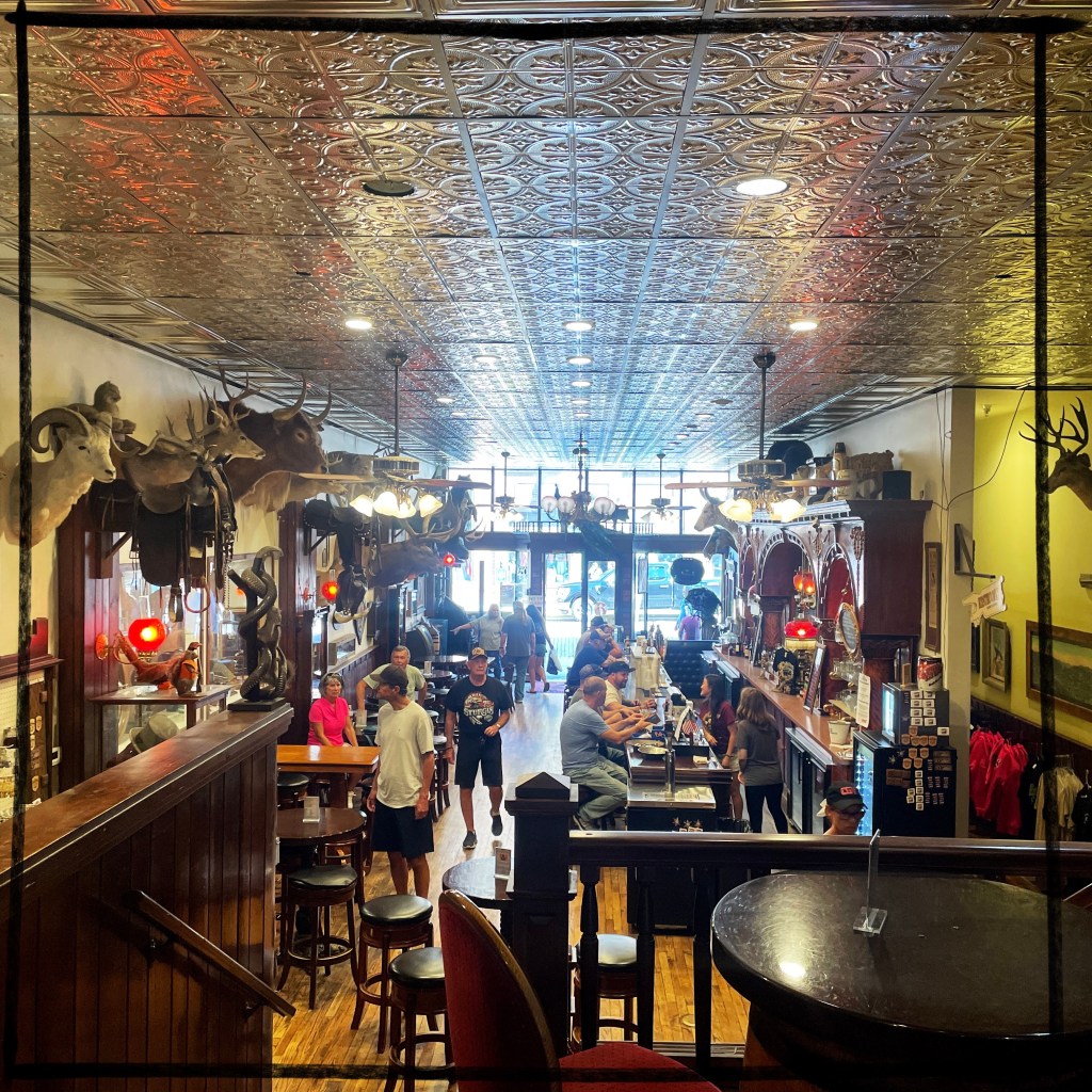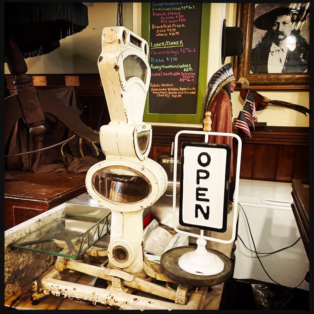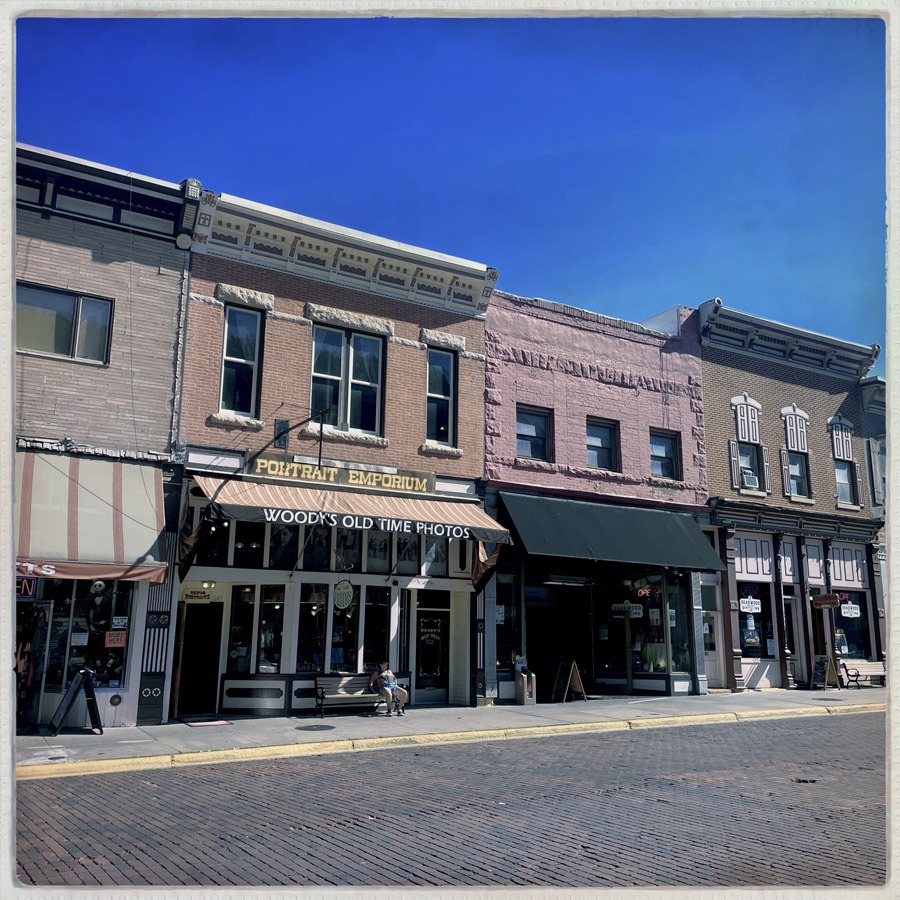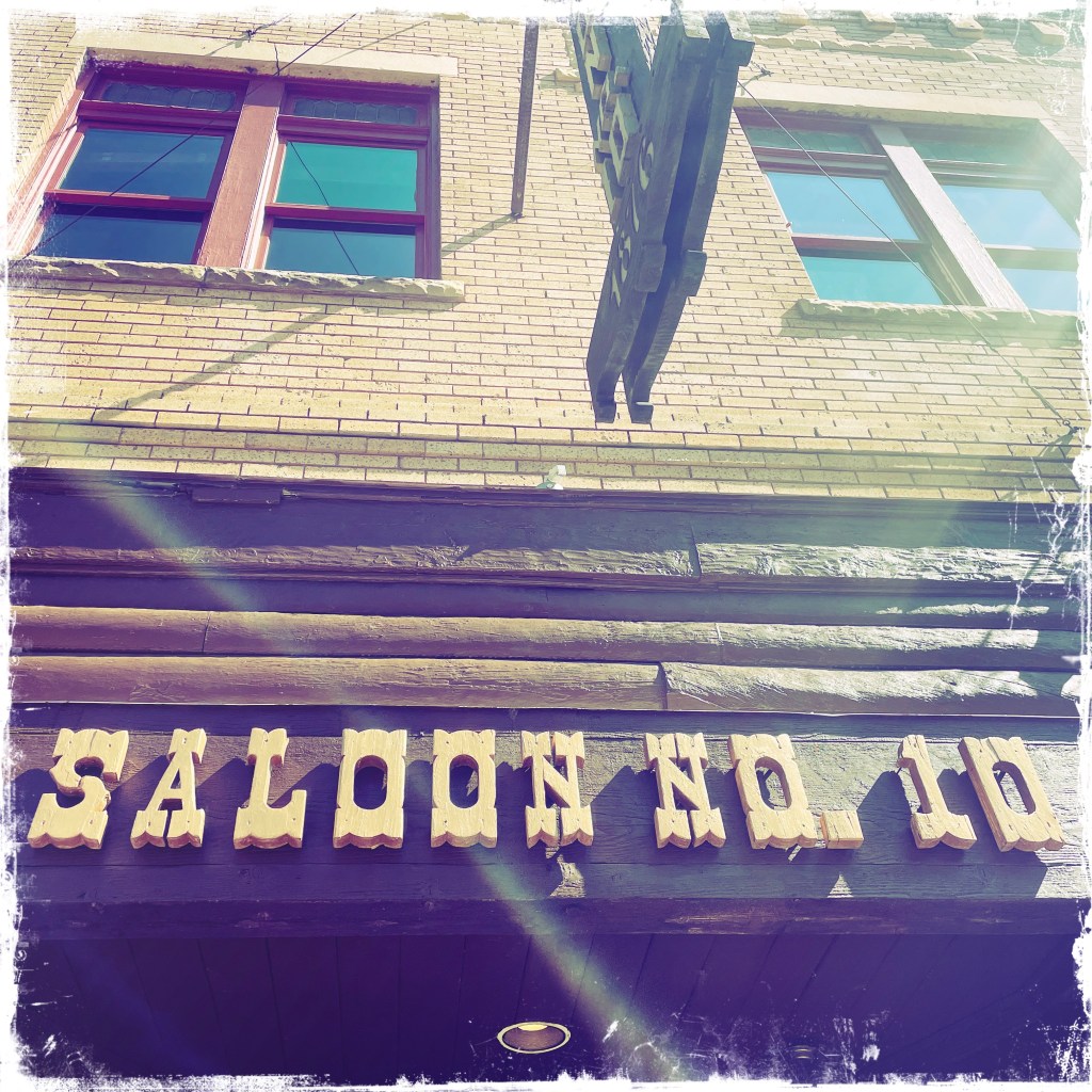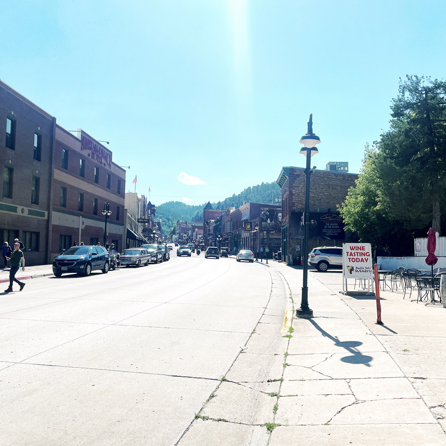 On arrive à Deadwood, qui est devenu un genre de ville western en plastique. Des magasins partout, très très très pro Trump (on n’a rien acheté). Mais il reste des bâtiments historiques magnifiques, avec des panneaux en bois qui disent que c’est ici que machin a été tué ou que c’est ici que bidule s’est fait arrêter.