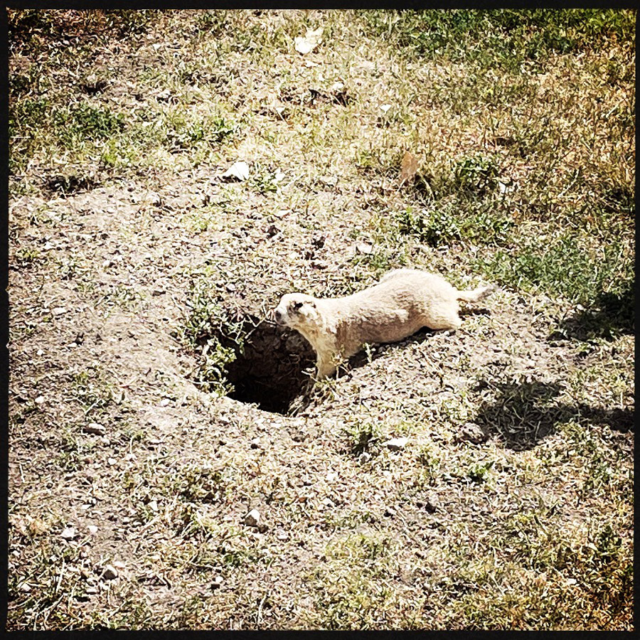 Petit à petit, le terre s’aplatit. Je n’ai pas dit la Terre. Ce n’est pas parce que Bigfoot existe qu’il faut croire à n’importe quoi non plus. Ce qui existe en revanche dans cette nouvelle contrée, ce sont LES CHIENS DE PRAIRIE ! Mode voix débile enclenché. Je cours partout en faisant MOUMOUMOU. C’est vraiment très mignon, ça fait des trous partout, c’est bien plus marrant que des taupes qu’on voit jamais. Parce que c’est mignons les taupes, mais on les voit jamais. Alors que là, les trous sont justifiés. Trou = mignon (hihi). On rencontre aussi le plus grand chien de prairie du monde, 6 tonnes. C’est pas rien.