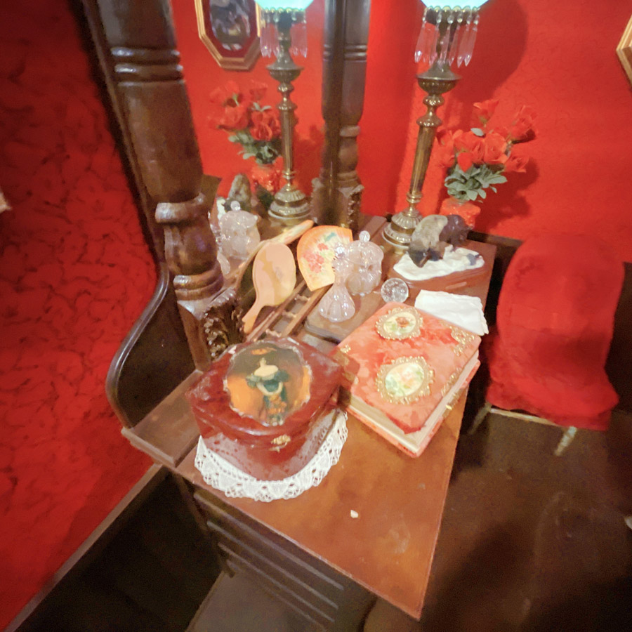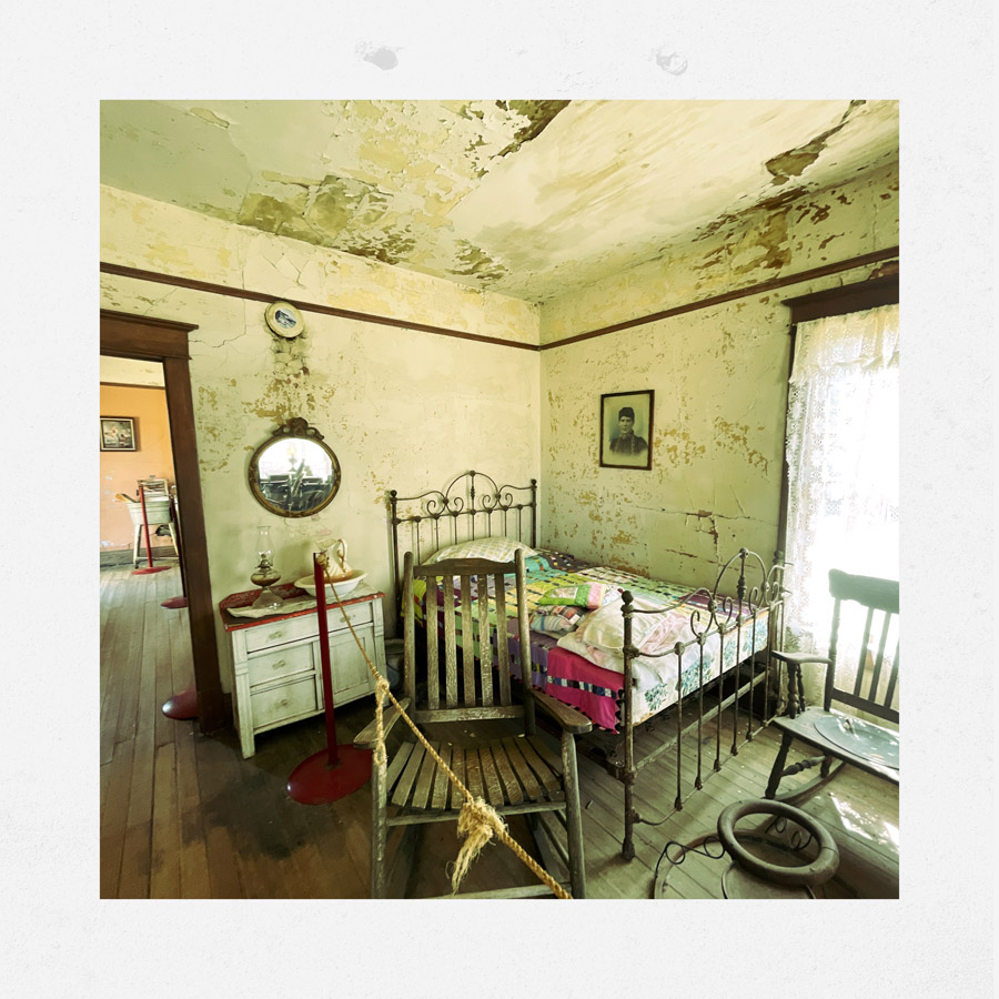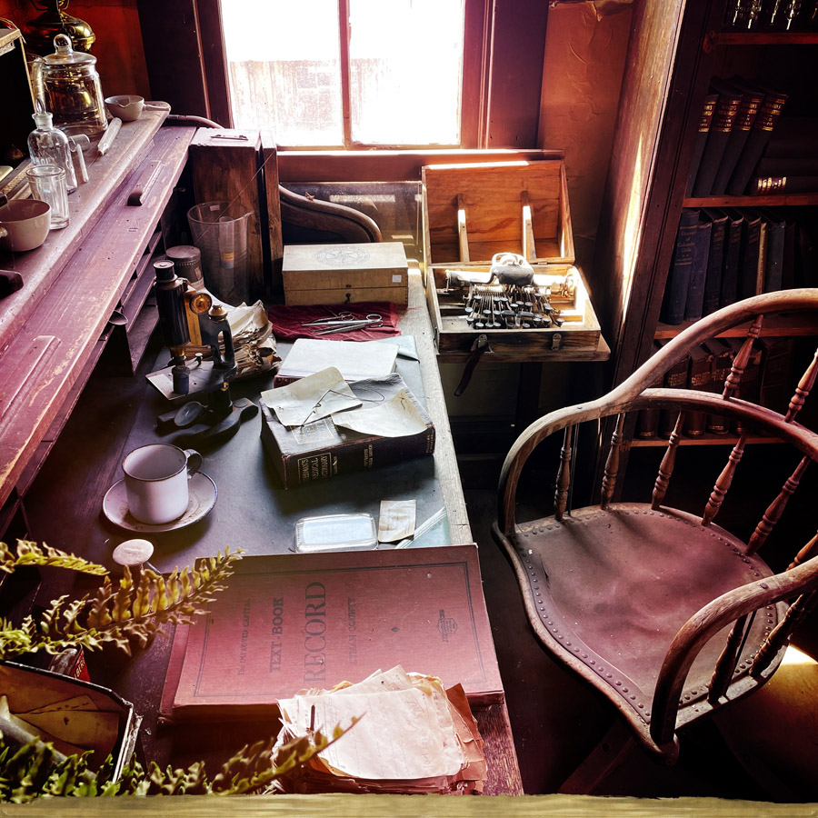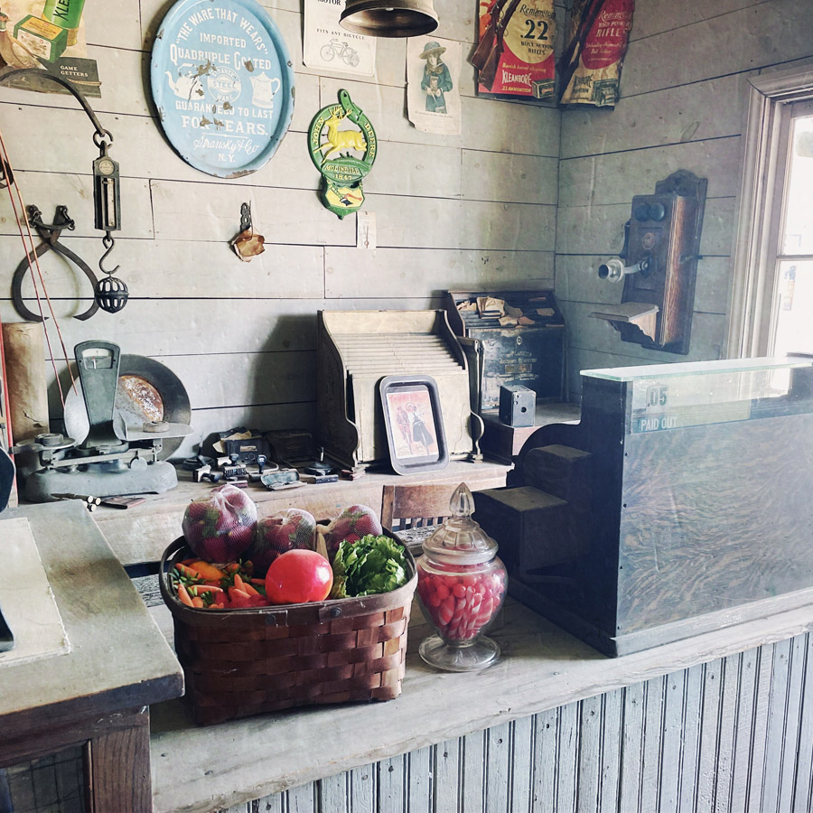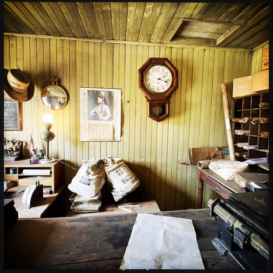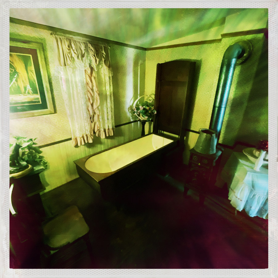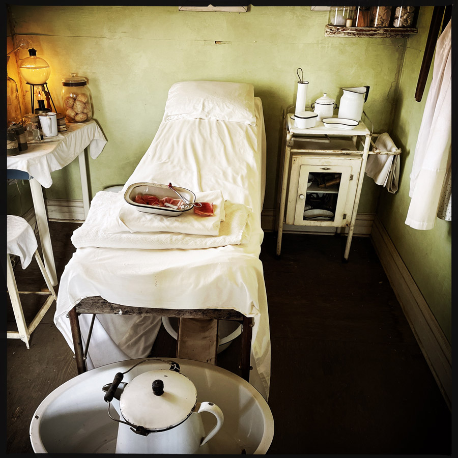 On entre dans des maisons, c’est très petit. J’imagine que c’était plus facile à chauffer. L’école, le train, le croquemort, le médecin, le magasin, la bijouterie, la banque, la mairie, tout y est. On fait des tas de photos, on se raconte des tas d’histoires. Chaque objet est un détail qui fait plonger un peu plus dans cette fin de siècle.