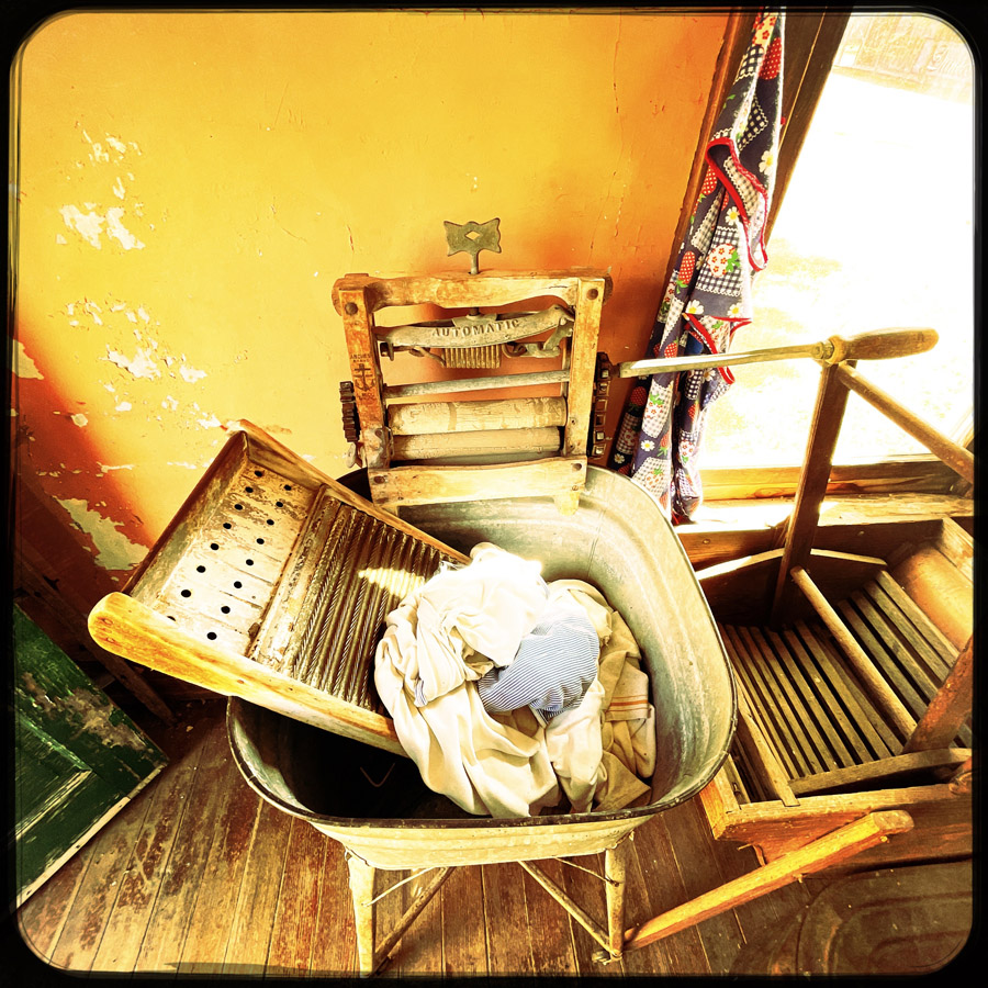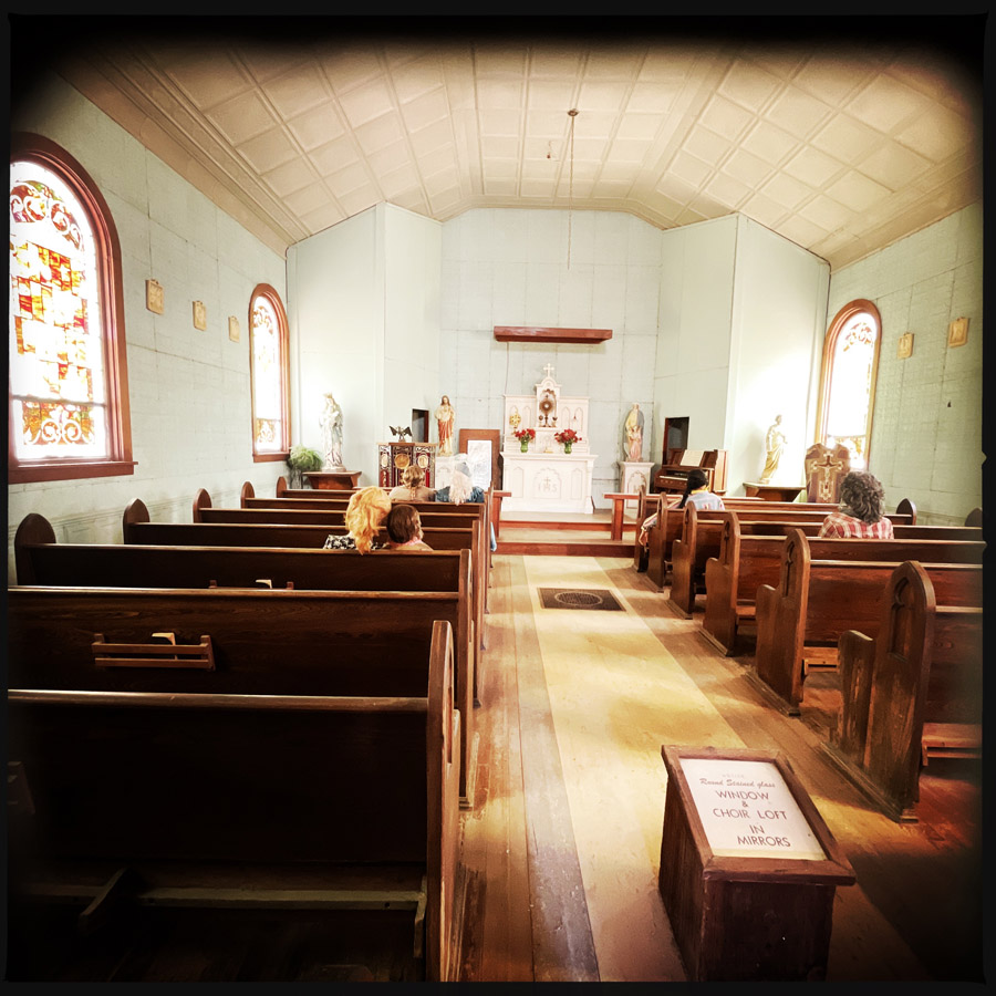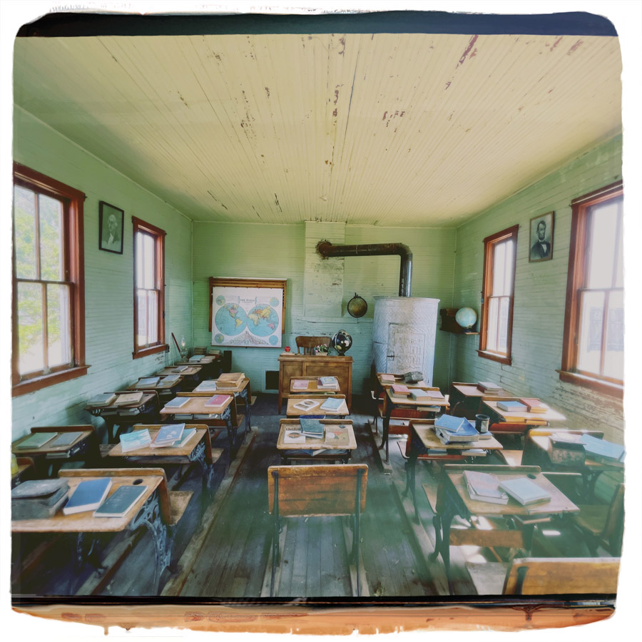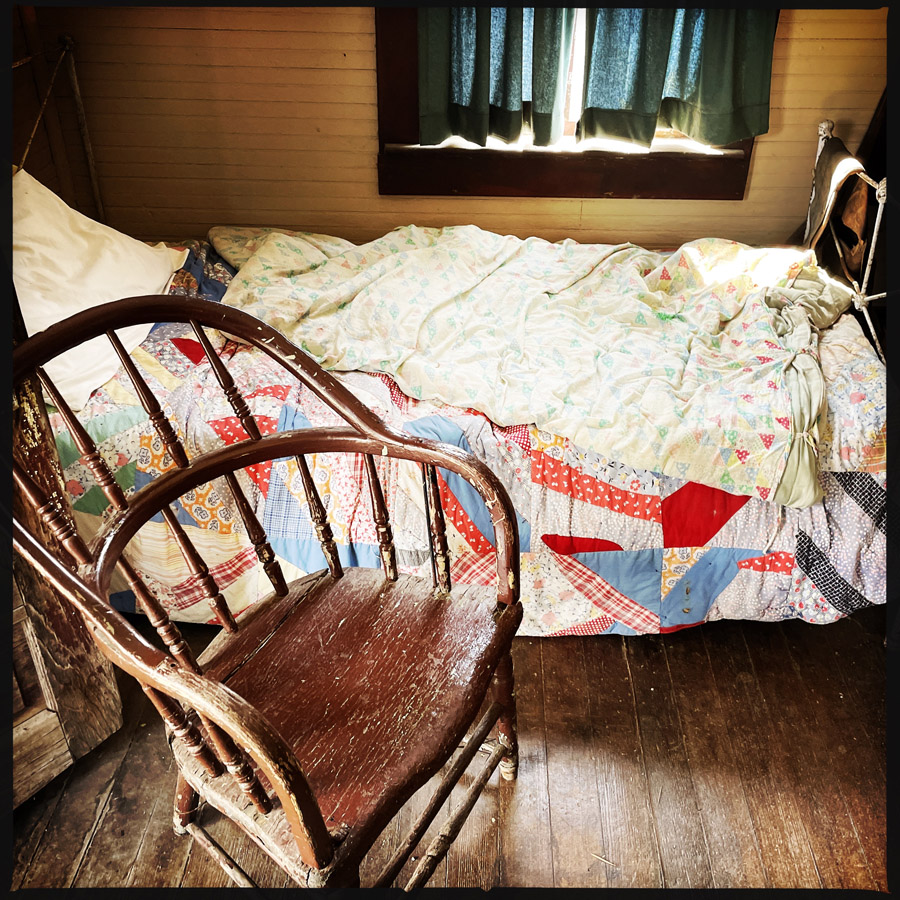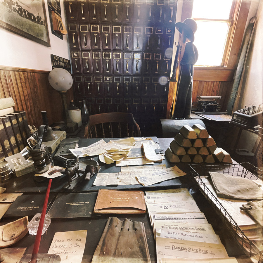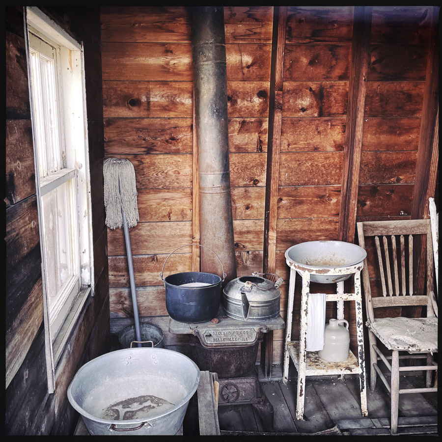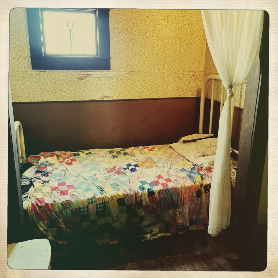 On entre dans des maisons, c’est très petit. J’imagine que c’était plus facile à chauffer. L’école, le train, le croquemort, le médecin, le magasin, la bijouterie, la banque, la mairie, tout y est. On fait des tas de photos, on se raconte des tas d’histoires. Chaque objet est un détail qui fait plonger un peu plus dans cette fin de siècle.