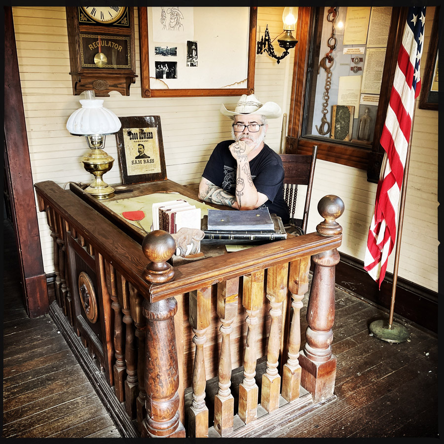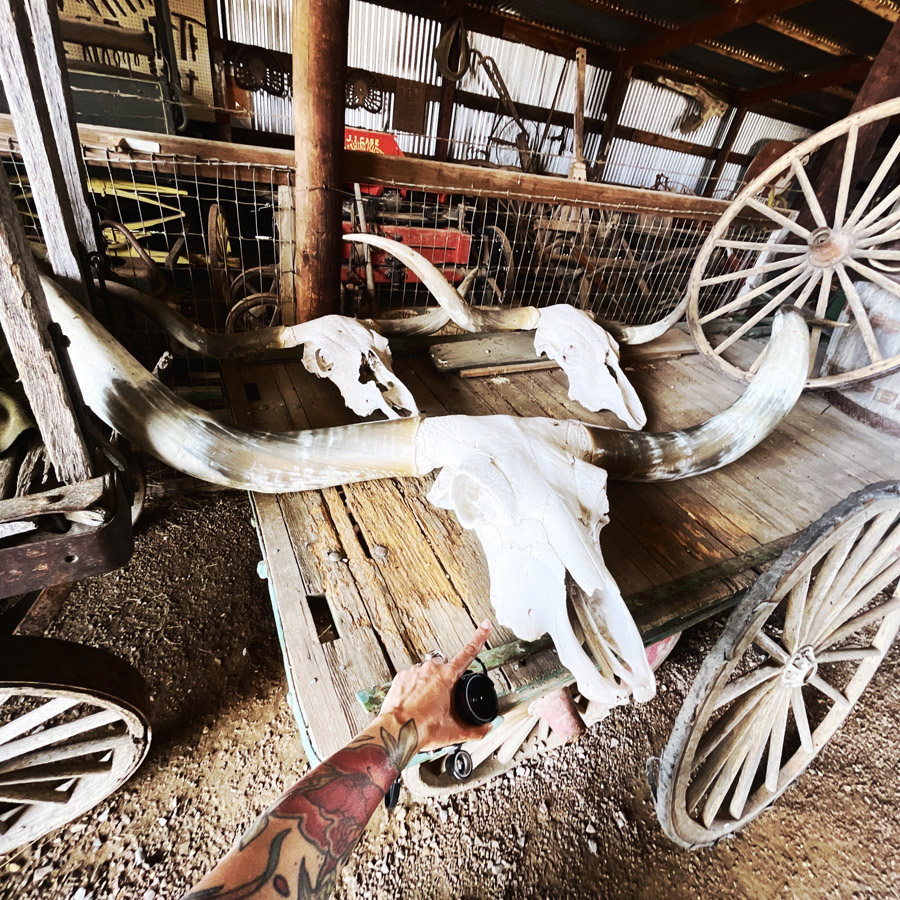 Cette attraction de bord de route a démarré avec l’achat d’un terrain par un certain Richard Hullinger dans les années 70. Pas longtemps après, il y a eu un tournage de film dans un bled pas loin, et le père de Richard a prêté des reliques indiennes à la production. En échange et remerciements, une fois le tournage terminé (abandonné ?), ils ont déplacé la rue principale sur le terrain de Richard.