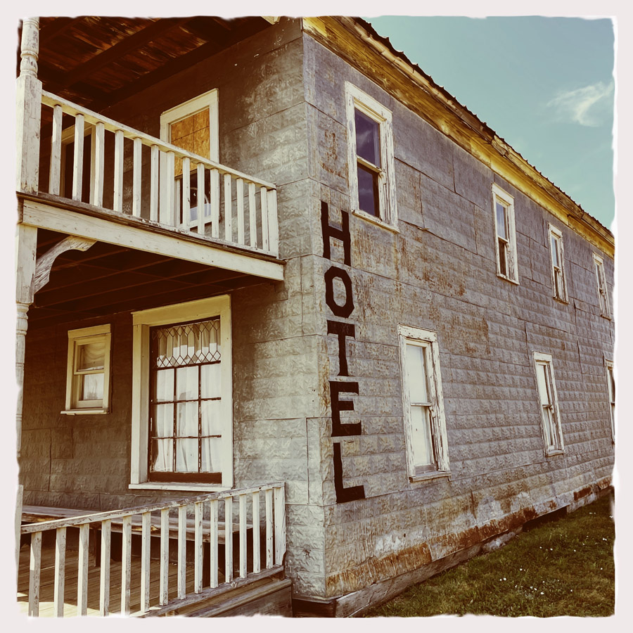 Ensuite, je vois sur mon Atlas Obscura qu’il y a une ghost town pas loin. Comme pour la première d’il y a quelques jours, des gens habitent encore ici. Oui il y a des maisons un peu cassées, mais je ne suis pas hyper à l’aise à l’idée de passer près de propriétés privées occupées pour faire mes photos. On demi-tour, la route 66 était plus fournie en motels abandonnés, c’est certain.