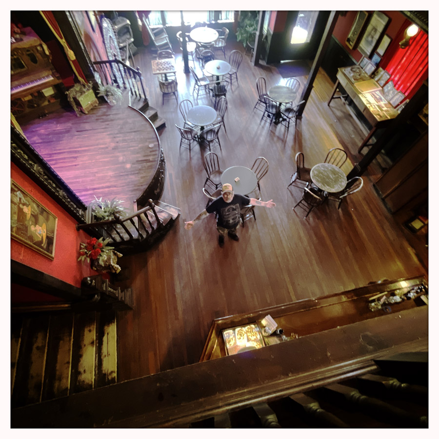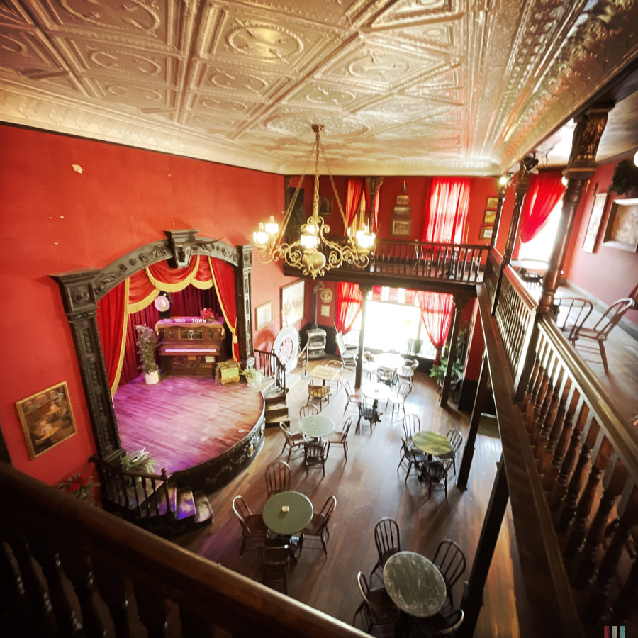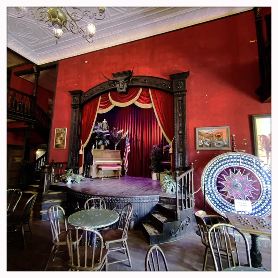 Le piano sur la scène vient de Deadwood ! C’est un vieux piano de 1915, il est très beau. On monte à l’étage, là où on s’encanaille, et il y a une sacrée boite à baignoire.