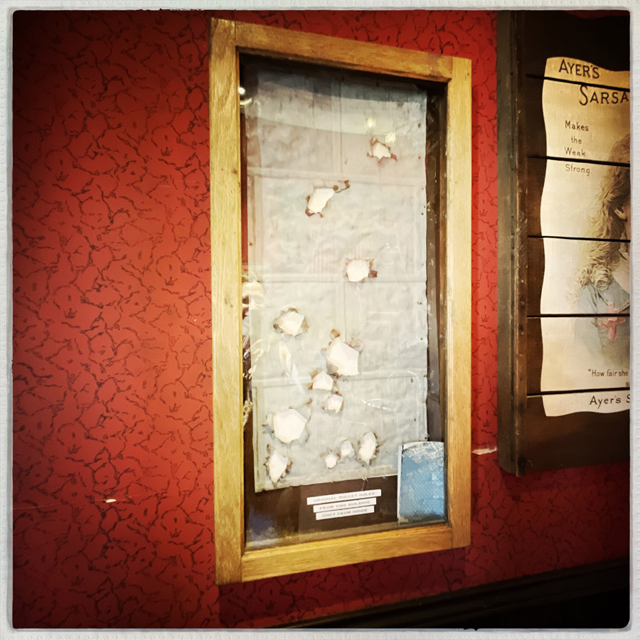 Sur un des murs du saloon, il y a un bout du mur d’époque encadré avec de vrais impacts de balles d’époque. Ça fout bien la frousse.