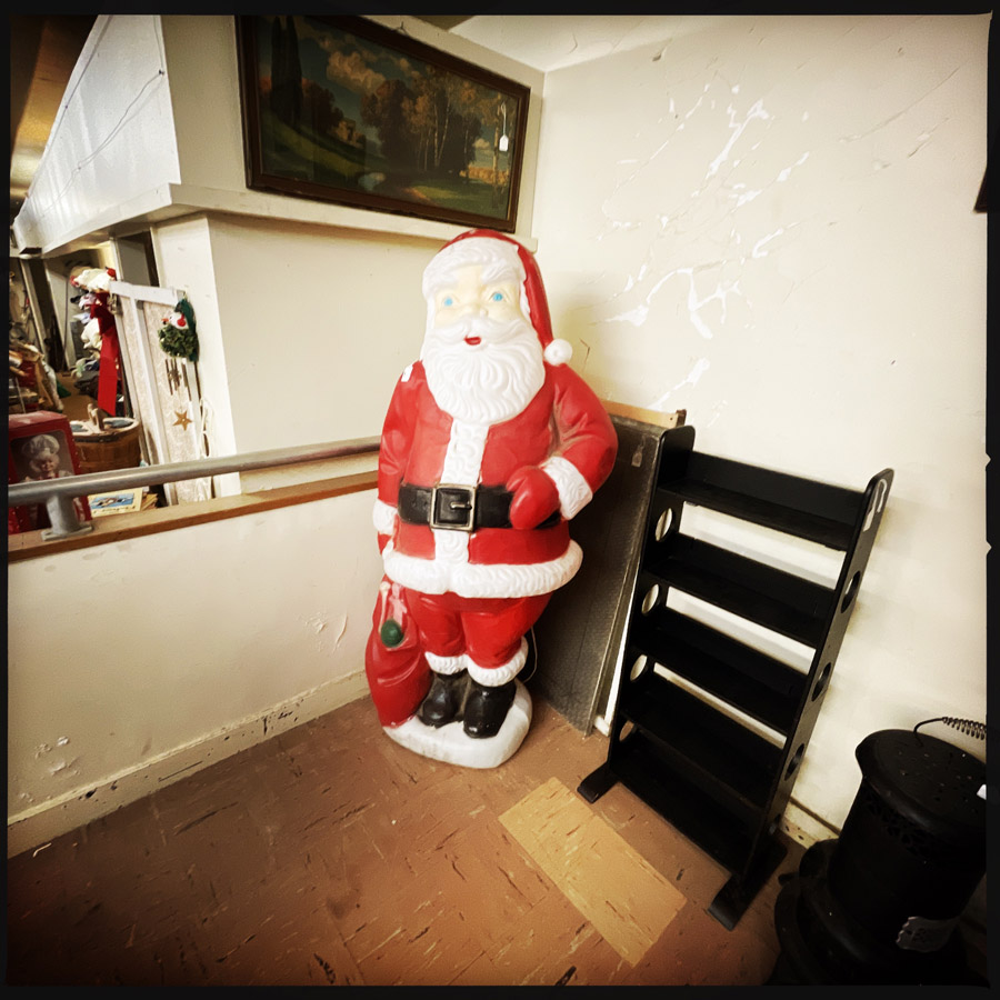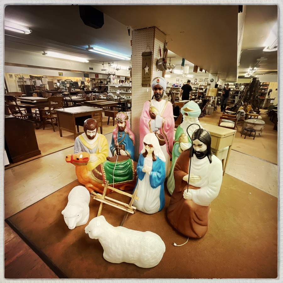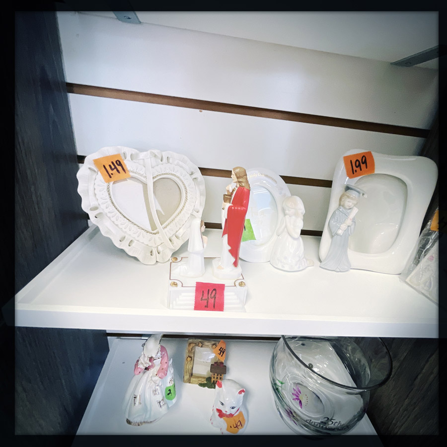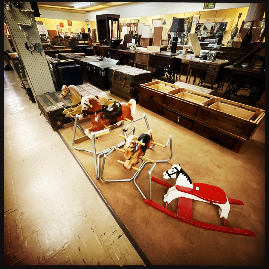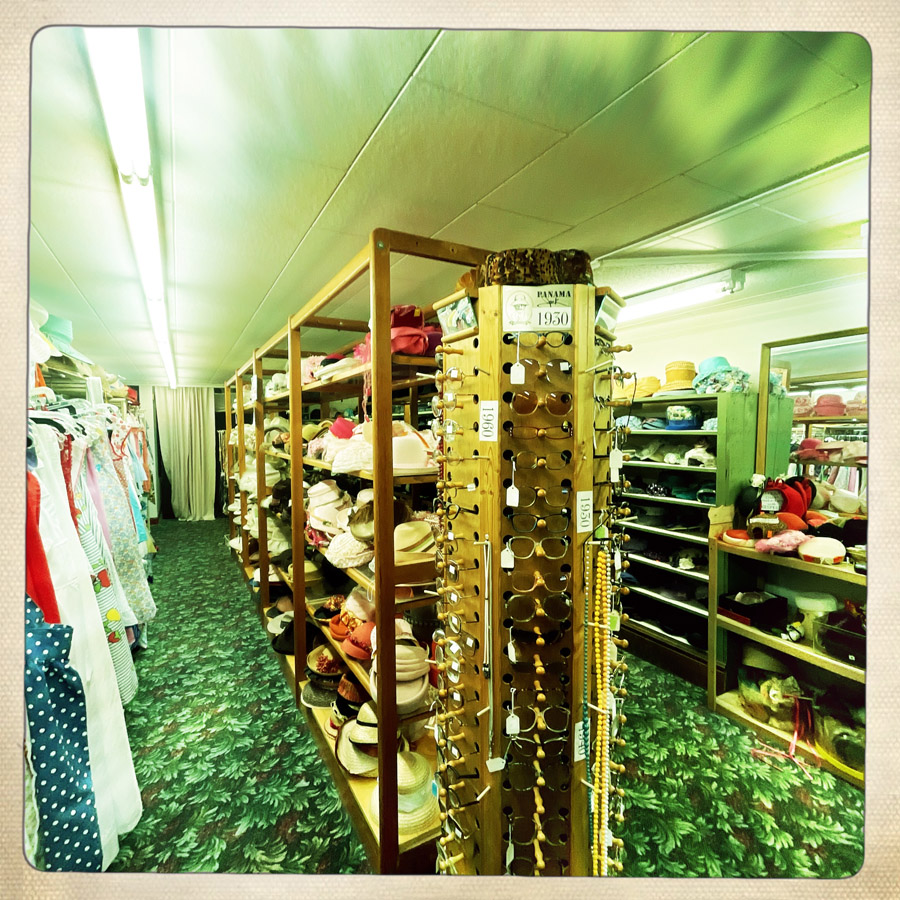 Au début, on ne devait pas y aller. C’était un peu la découverte sur Google Maps pour déconner, mais il se trouve qu’à Mitchell, il y aussi un de ces magasins façon brocante où on a tout envie d’acheter. Mais on est sage et on ne repart qu’avec l’ESSENTIEL. En revanche, mon cœur est en miette, car il y avait des tas de santiags de seconde main, à 35/40 dollars (en général, c’est 150/300 neuf) et celles qui me plaisaient était la demi pointure en dessous qui fera mal aux pieds. Nul, nul et méga nul.