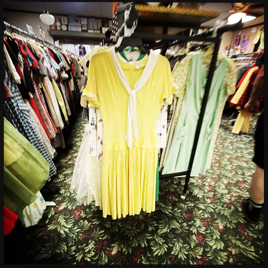 Y’a aussi dans cette rue, une boutique de fringue vintage complètement dingue, thématisée par époque. Y’a TOUT. Années 80, 20, 60, j’aurais pu me perdre là-dedans, des plombes.