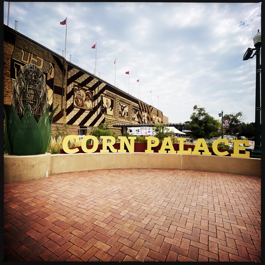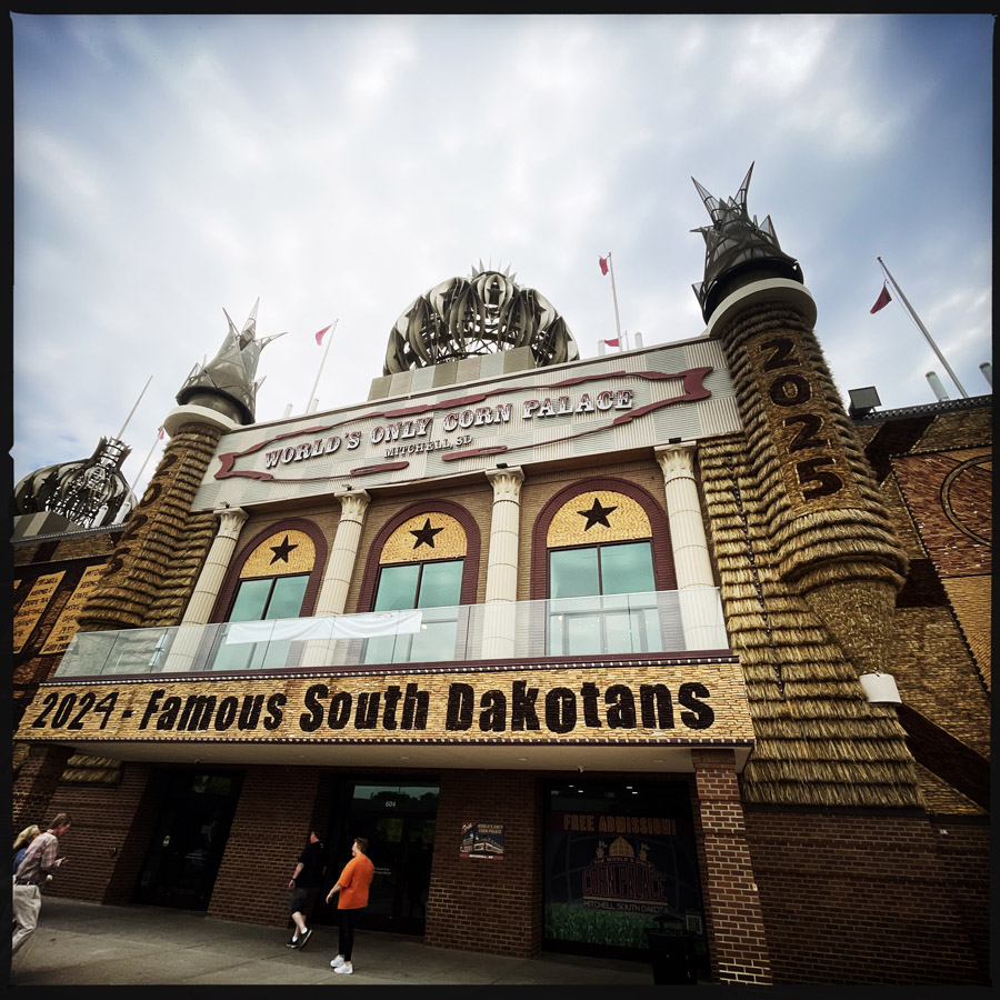 C’est une journée de route qui nous attend, avec peu de surprises. On va tout de même faire une belle pause à Mitchell, là où on trouve LE PALAIS DU MAÏS ! LE SEUL AU MONDE ! (oh really ?).