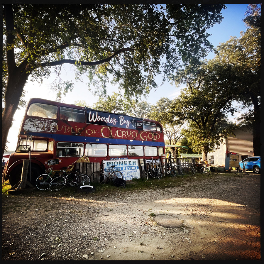 Avant de se faire à diner, on va boire un coup dans un bar de bord de de lac. Y’a un chat sans patte avant, des petits chiens, une déco bordélique et tout le monde est très gentil.