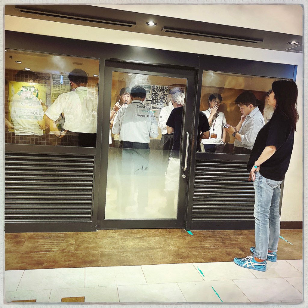 On trouve l’entrée du bar à saké, c’est à l’étage. On grimpe, on ouvre la porte. Une foule de gens bien habillés s’arrêtent net de parler, et nous fixent avec des sourires gênés.