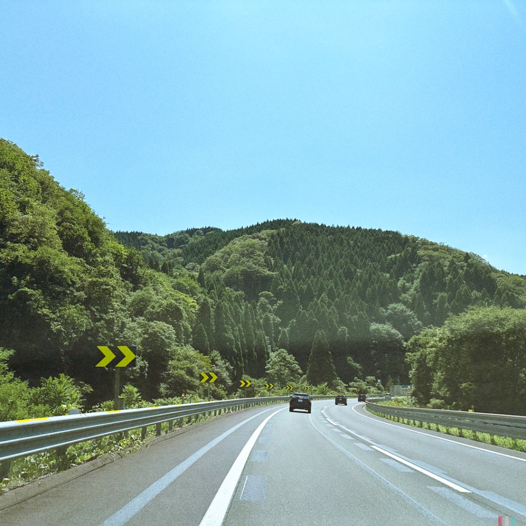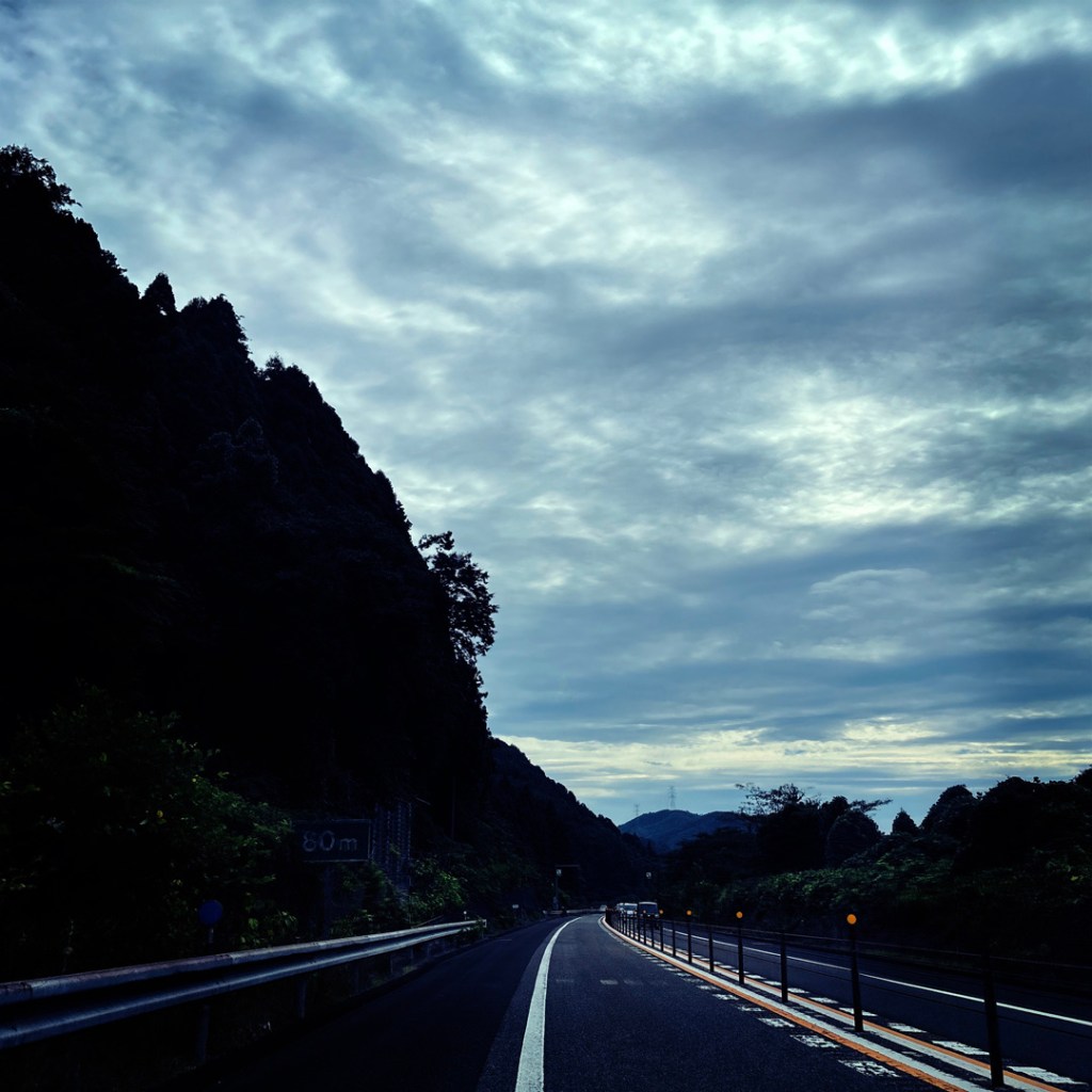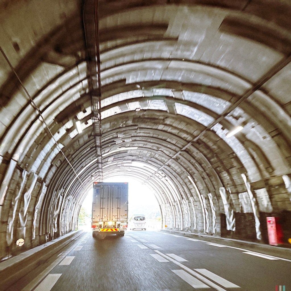 On passe petit déjeuner vite fait, et on prend la route. Après les arbres fruitiers, les rizières, et les montagnes, et les tunnels. Beaucoup, beaucoup de tunnels. Sur les 400 bornes à faire, on a dû en faire au moins 100 à l’intérieur des montagnes.