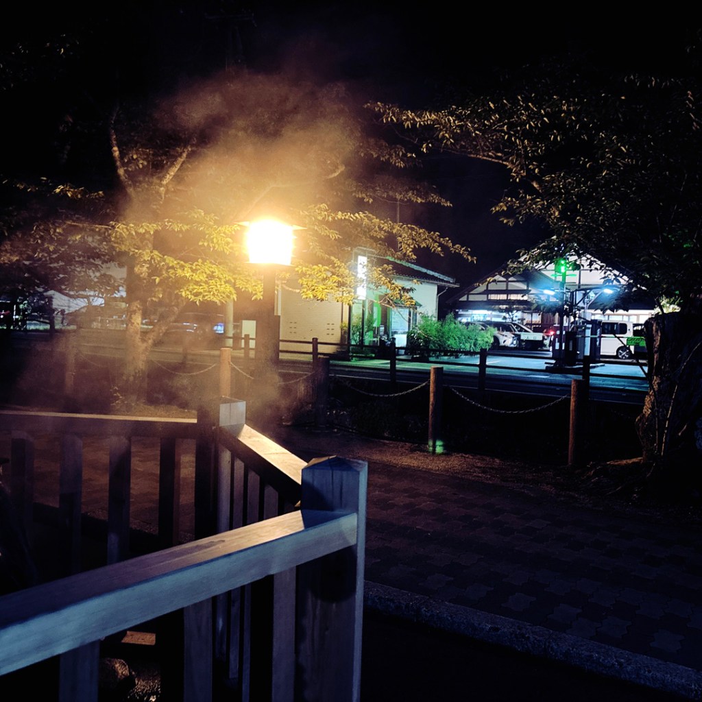 On demande si y’a un onsen pas trop loin. Vu son visage, c’est évident qu’il y a des onsens pas trop loin. Elle nous dit le nom d’un quelque part. Je regarde sur internet. Effectivement, il y a toute une rue, avec 7 onsens, et c’est précisé « tattoo friendly ». C’est à 10 minutes en voiture. Alors là ma bonne dame, que demande le peuple.