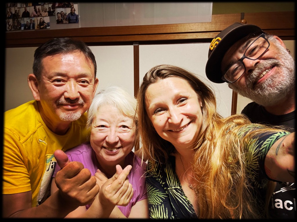 On rentre, et nos hôtes nous rejoignent dans le petit salon commun. Tohishihito nous dit d’attendre. Il est allé chercher une bouteille de saké qu’il a acheté pour nous. Je pense qu’il a senti notre enthousiasme. C’est si gentil.