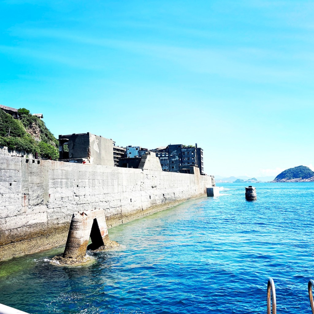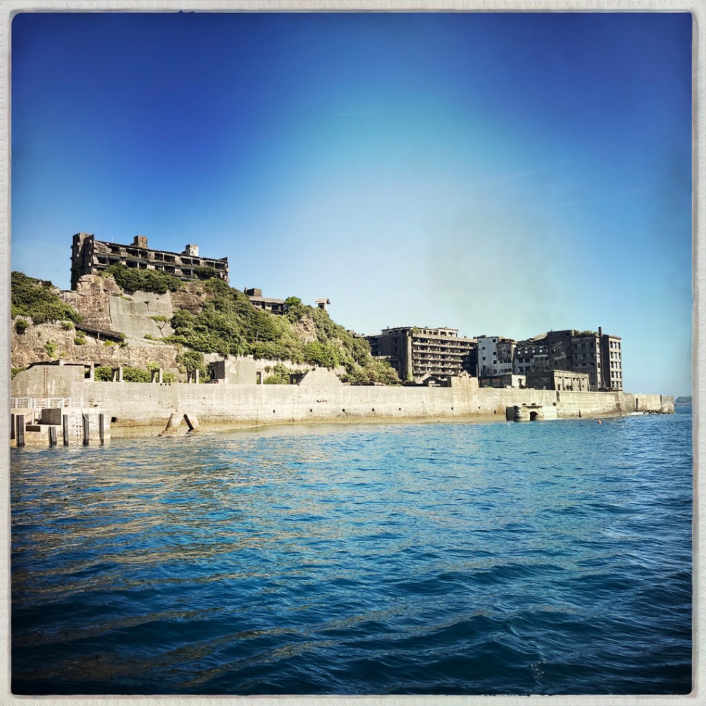 Là, c’est toute une île. Toute une ville. Mais pourquoi ? Elle s’appelle Hashima, mais on l’appelle Gunkanjima, « Battleship Island » à cause de sa forme. Elle ressemble à un bateau militaire.