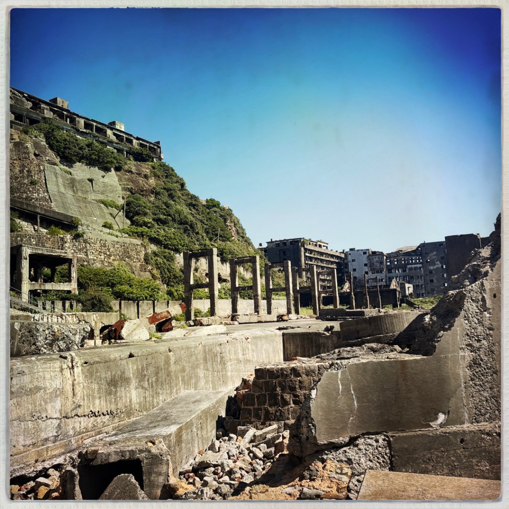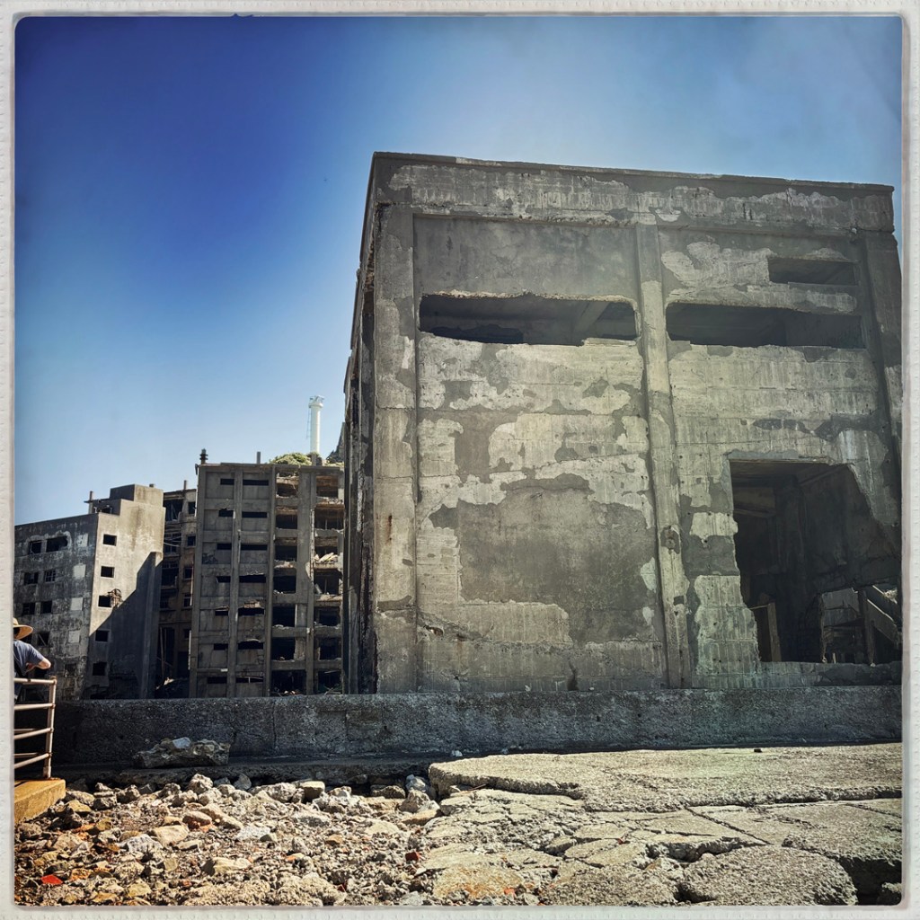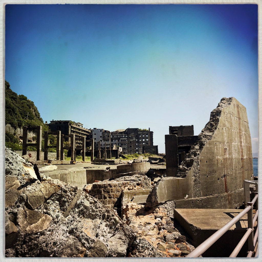 L’exploitation a commencé en 1890, et l’île a été abandonné en 1974. En 59, il y avait de plus 5000 habitants. Petit à petit, ils ont construit, appartements, école, hôpital, cinéma, bain, pachinko. Pendant la guerre, les prisonniers chinois et coréens ont été forcés de travailler là, dans des conditions déplorables, et beaucoup sont morts. 137 d’après certaines autorités, 1300 selon d’autres…