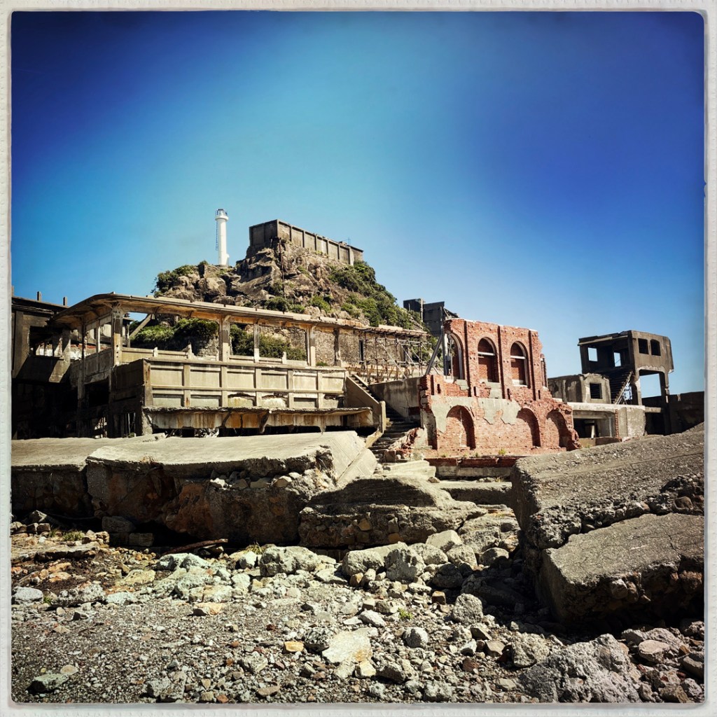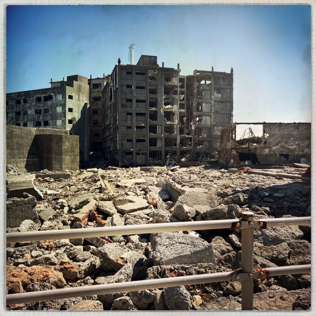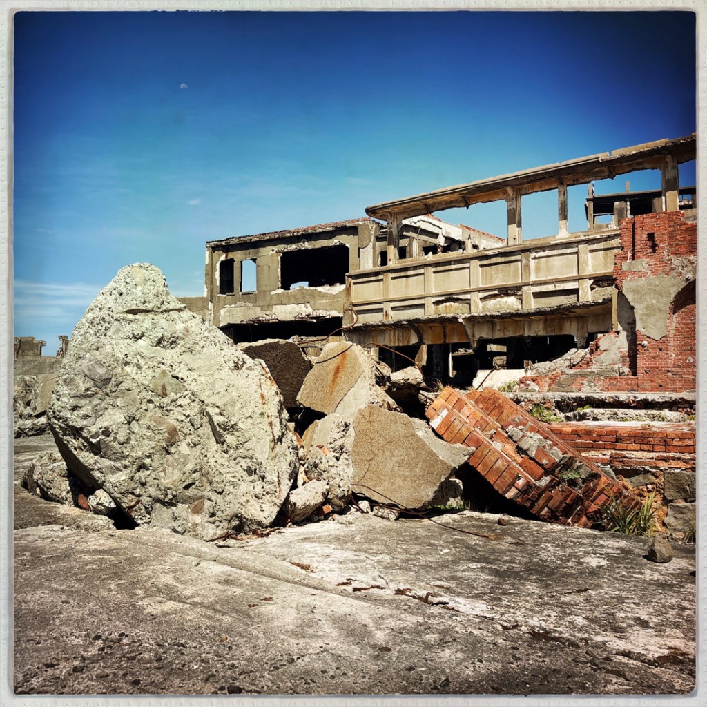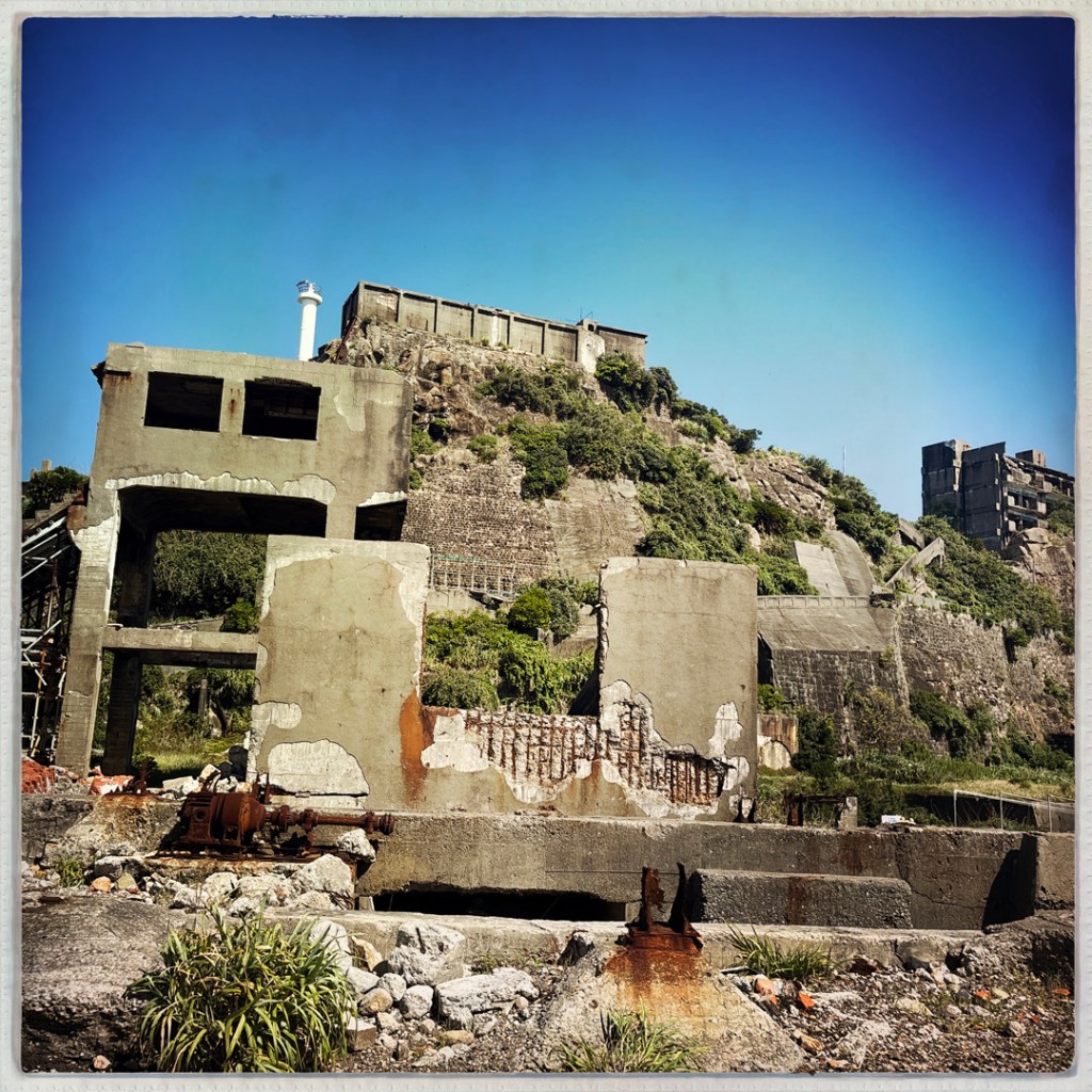 L’exploitation a commencé en 1890, et l’île a été abandonné en 1974. En 59, il y avait de plus 5000 habitants. Petit à petit, ils ont construit, appartements, école, hôpital, cinéma, bain, pachinko. Pendant la guerre, les prisonniers chinois et coréens ont été forcés de travailler là, dans des conditions déplorables, et beaucoup sont morts. 137 d’après certaines autorités, 1300 selon d’autres…