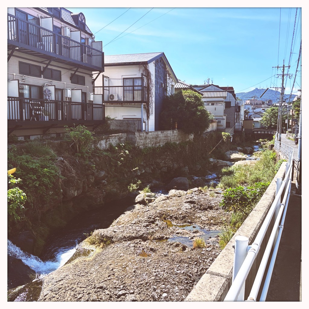 Heureusement, il y a des distributeurs partout. On peut boire et geindre sans tomber dans les pommes. Toutes les rues sont en pente. On longe un ruisseau. On passe devant des logements qui ont l’air grand comme des placards à balais. J’espère qu’ils ont la clim…