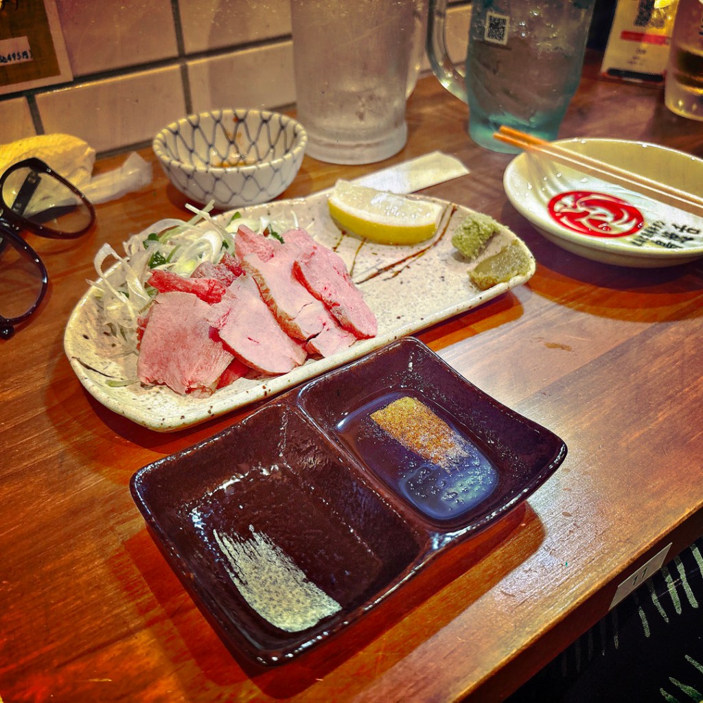 On mange (j’ai pris un sashimi de langue de bœuf). On s’en va, il faut rentrer. Pas de bus en centre-ville, il faut marcher un peu.