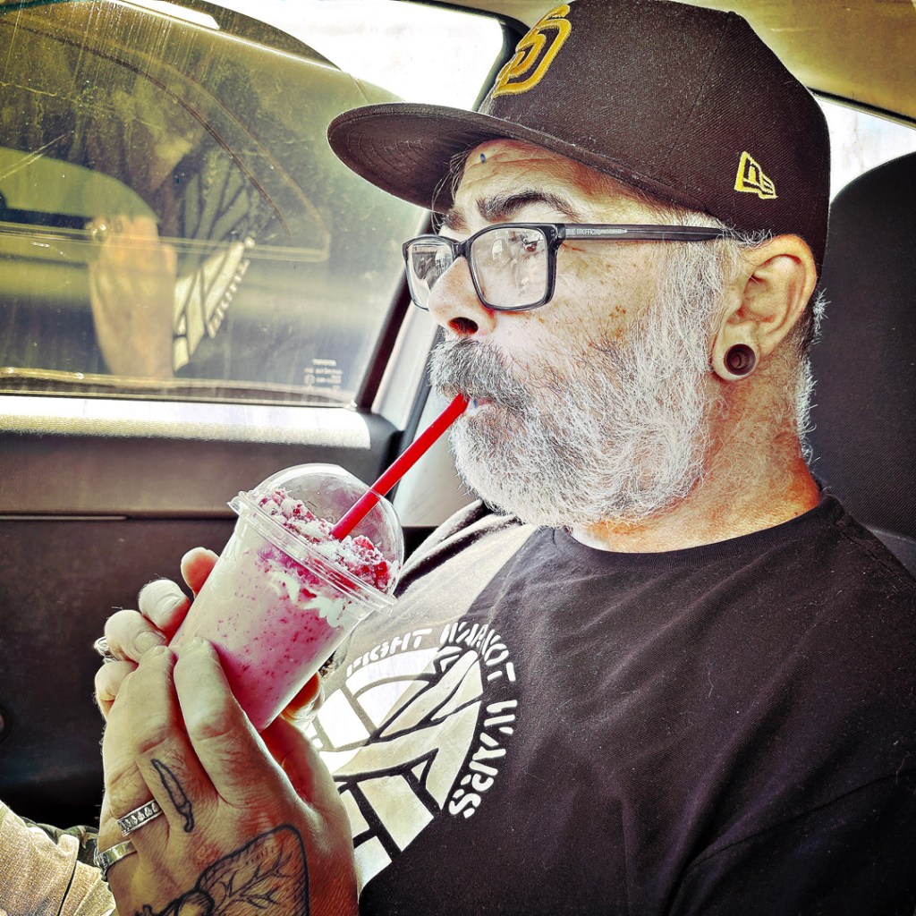 Il amène un dessert. De la glace dans des coupes en plastique Moët et Chandon, et deux expressos. Il dit de boire la moitié du café et de mettre l’autre sur la glace. Pour le coup, Manu assume : il ne boit pas de café. Alors le monsieur m’invite à boire les deux. (qui c’est qui va pas dormir ce soir ?).
