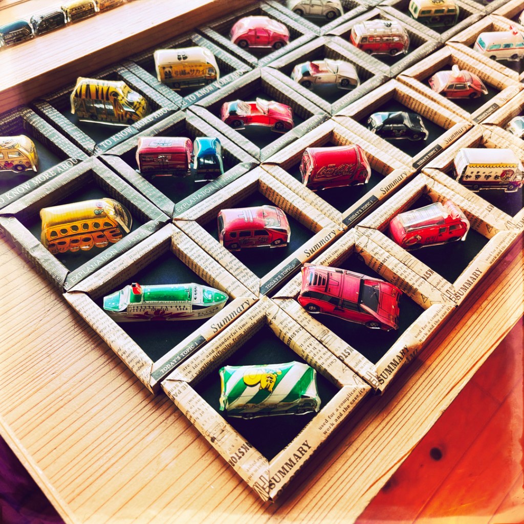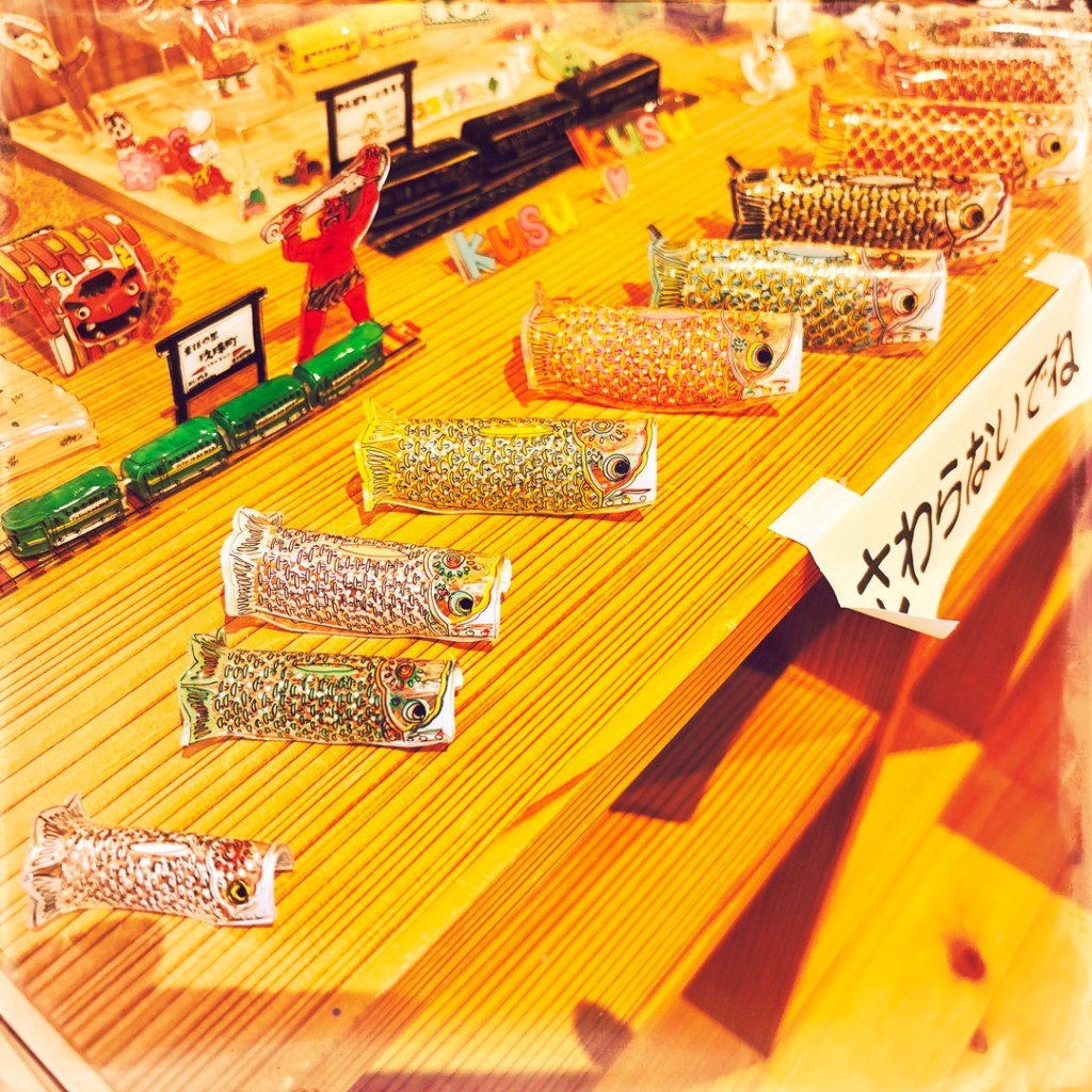 On va faire un tour au musée (les toilettes y sont merveilleusement propres). C’est 100 yens par personne (0,58 centimes). Ce n’est pas foufou, à part une activité « plastique fou » où en suivant un modèle sur un rhodoïd, on peut colorier un train comme on veut, et une dame, après cuisson, leur fait prendre la forme de locomotive. Pour les mômes c’est super, mais on est vieux, alors on trouve ça mignon, et puis s’en va.