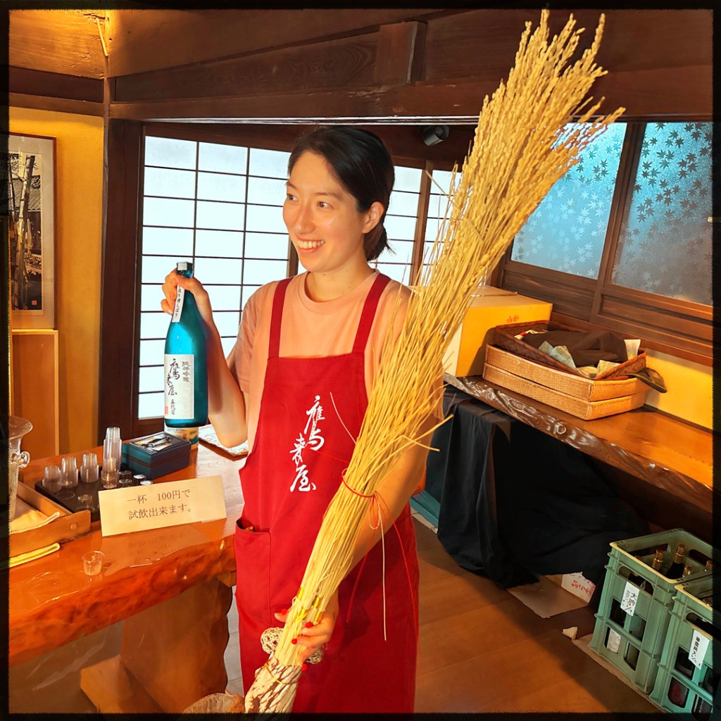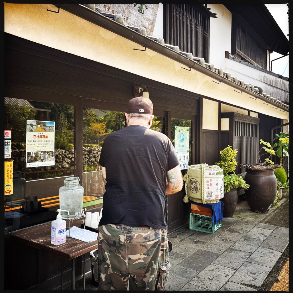 Sur la route, on s’interroge. Qu’est-ce qu’on pourrait faire de culturel ? OH ! ET SI ON ALLAIT VOIR UNE BRASSERIE DE SAKÉ ? Pas con. C’est à la fois régional et national. Nous faisons honneur. J’en trouve une pile poil sur la route.