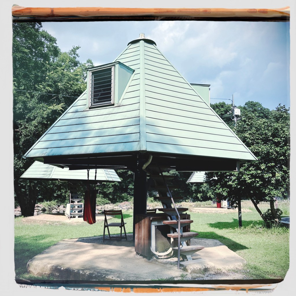 Ce soir, on dort dans un camp un peu vacances, eco-friendly, dans une cabane méga mignonne, près d’une rivière. On peut se baigner à volonté. On va pouvoir ne rien faire. Il y a même une smoking zone accueillante pour Manu.